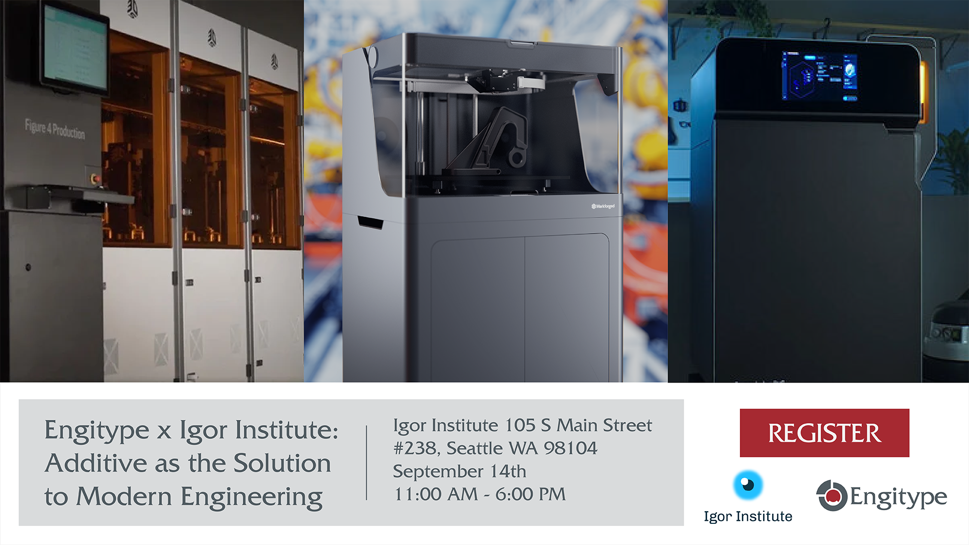 This event will feature exhibitions from Igor Institute, a world-class engineering firm, and Engitype partner Markforged, a world-class provider of industrial additive hardware, software and materials. Presentations will be followed by an open discussion on AI, machine-learning and robotics as it relates to design, engineering and additive.